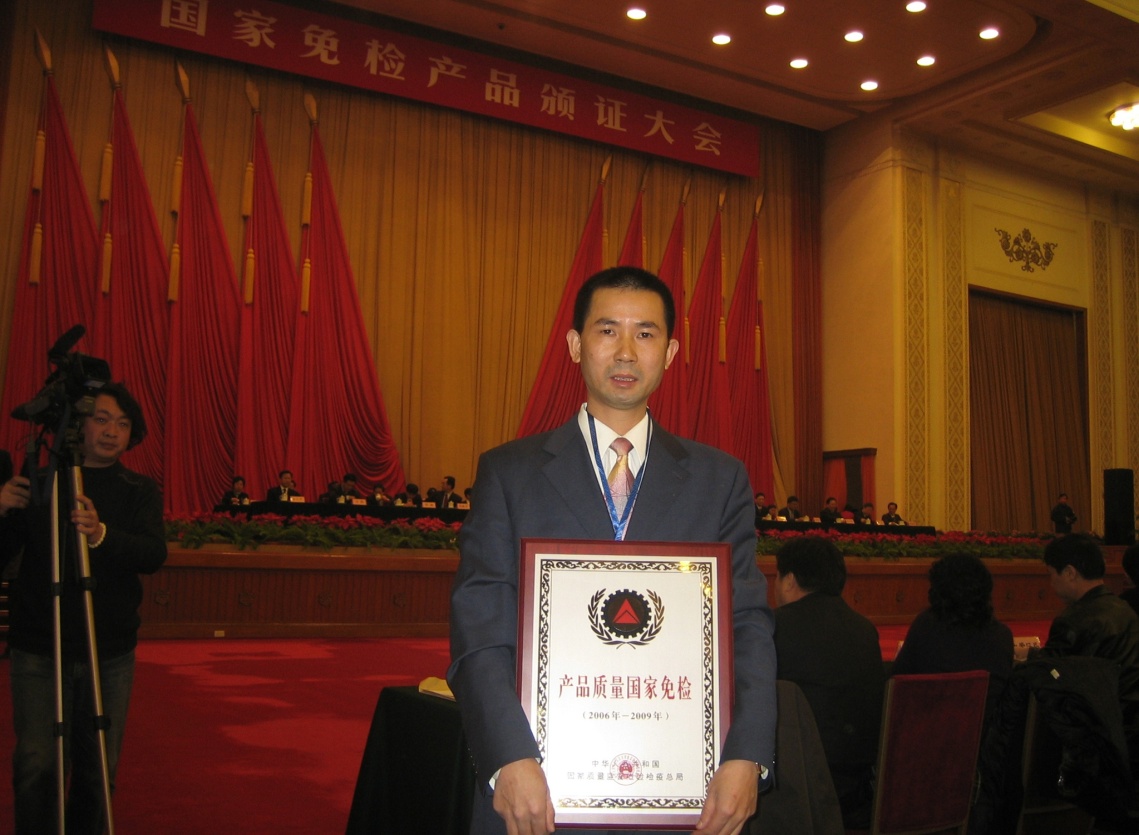 2006年12月21日,到人民大會堂領(lǐng)取產(chǎn)品質(zhì)量國家免檢證。